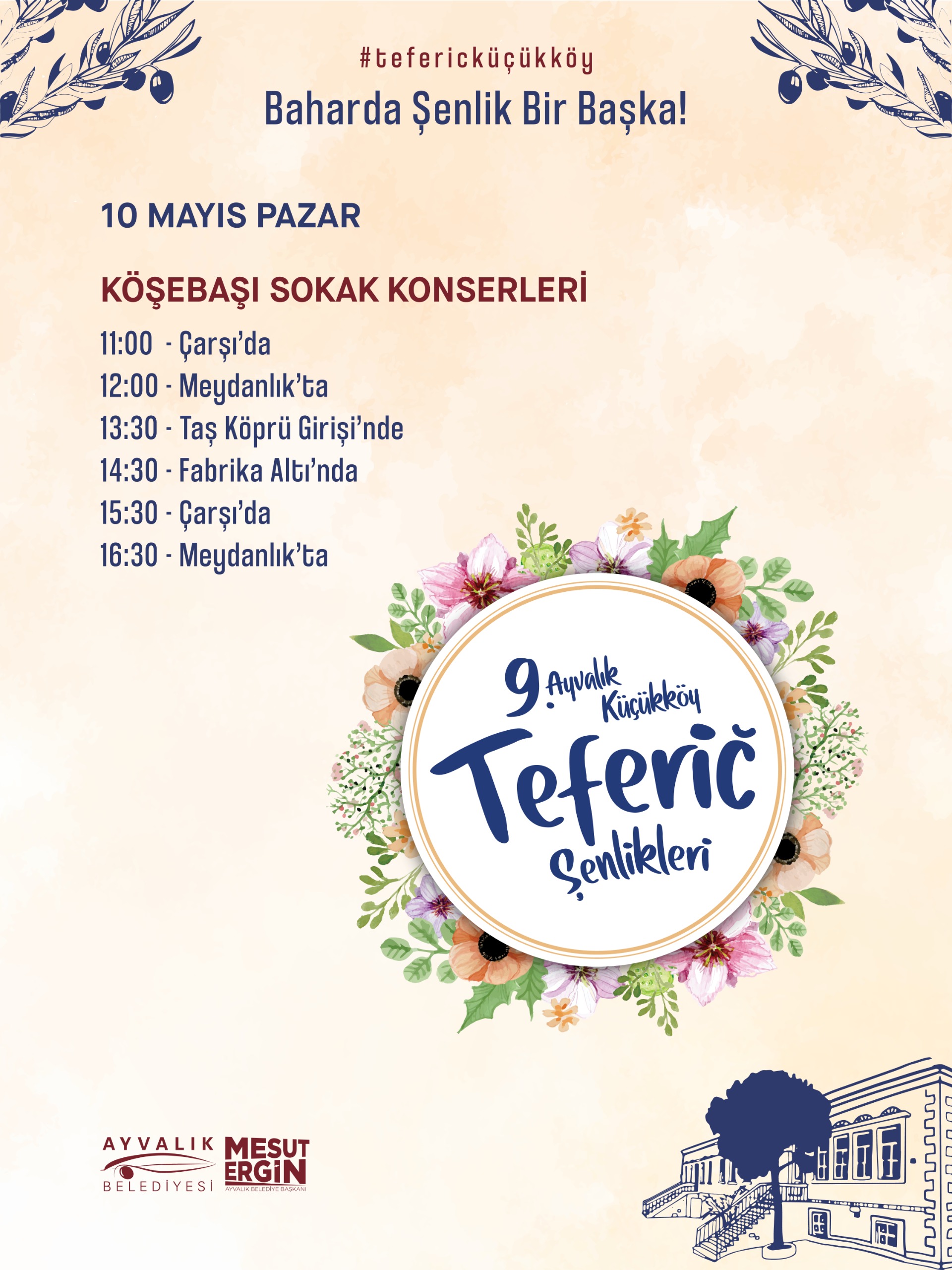 Üç gün boyunca gezici konserler ve sokak atölyeleriyle renklenecek Teferiç Şenlikleri, hem bölge halkını hem de kenti ziyaret eden misafirleri bir araya getirerek baharın enerjisini paylaşmayı amaçlıyor. Ayvalık Belediyesi tarafından düzenlenen şenlikler, Küçükköy’ün tarihi dokusu içinde kültür, sanat ve eğlenceyi buluşturarak unutulmaz bir deneyim sunacak.