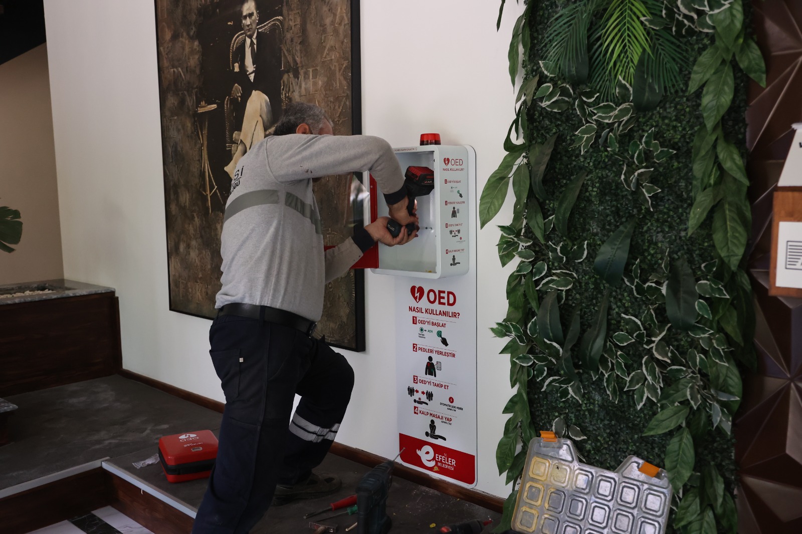 Başkan Yetişkin, Aydın Gazeteciler Cemiyeti iş birliğiyle, kentin en işlek noktalarını modern tıbbın en önemli ilk yardım araçlarından biri olan OED (Otomatik Eksternal Defibrilatör) cihazlarıyla donatıyor. Saniyelerin hayata tutunmak için yarıştığı o kritik anlarda, Efeler halkı artık yalnız olmayacak.