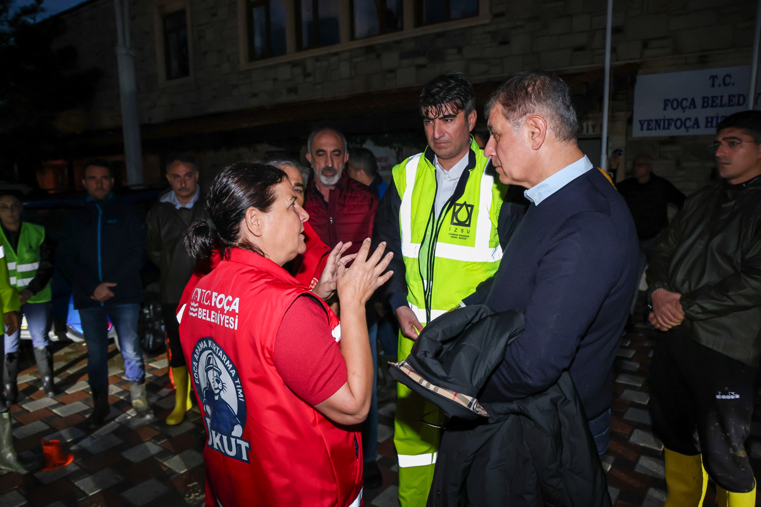 İzmir Büyükşehir Belediyesi İZSU ve itfaiye ekiplerinin yanı sıra Afet İşleri Dairesi, İklim Değişikliği ve Sıfır Atık Dairesi, Sosyal Hizmetler Dairesi, Muhtarlık İşleri Dairesi, Fen İşleri ve Veteriner İşleri Dairesi Başkanlığı ekipleriyle ilçede yaşamı normale döndürmek için 197 araç ve 350 personelle bölgede su tahliye çalışmalarını yürütürken, vatandaşların da ihtiyaçlarını karşılamak için çalışıyor.
