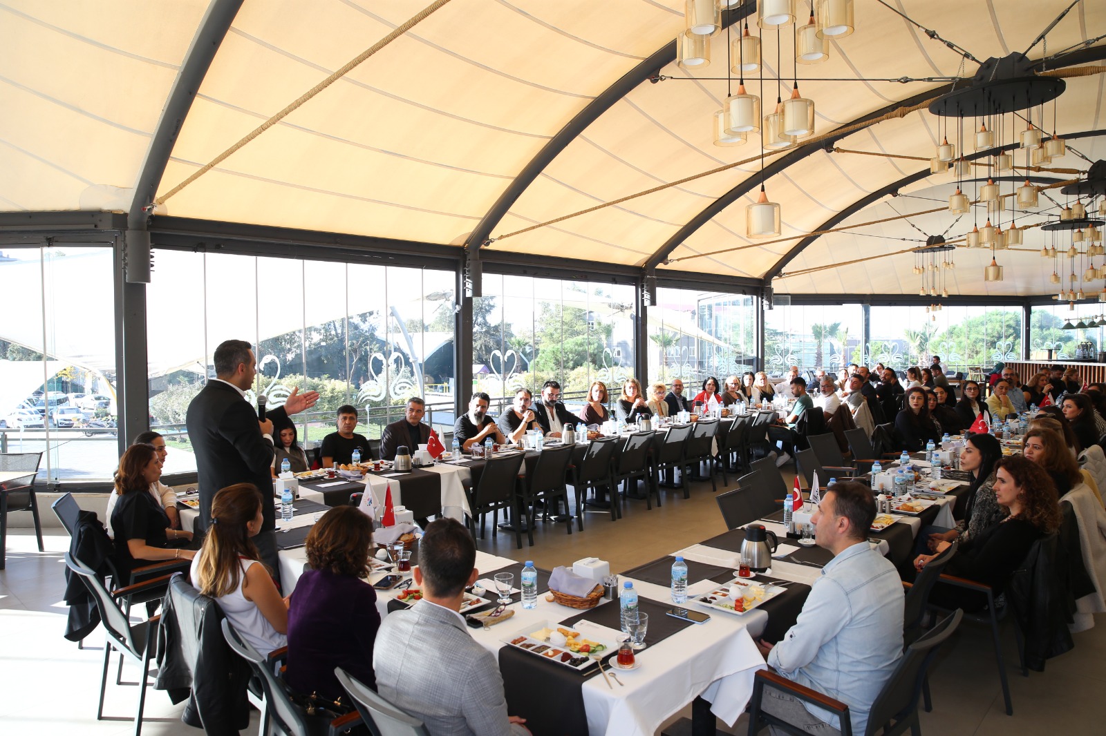 Kutlamalar daha sonra Akvaryum Kafe’de devam etti. Başkan Yıldız, Çiğli Belediyesi Eğitim Merkezi (ÇİBEM) öğretmenleri, Kültür, Sanat ve Sosyal İşler Müdürlüğü, Gençlik ve Spor Hizmetleri Müdürlüğü ile Kadın ve Aile Hizmetleri Müdürlüğü eğitmenleri ile kahvaltıda buluştu. Samimi bir ortamda gerçekleşen buluşmada öğretmenlerle birlikte pasta kesen Başkan Yıldız, günün anısına Mavi Servi fidanı armağan ederek kutlamalara anlam kattı.