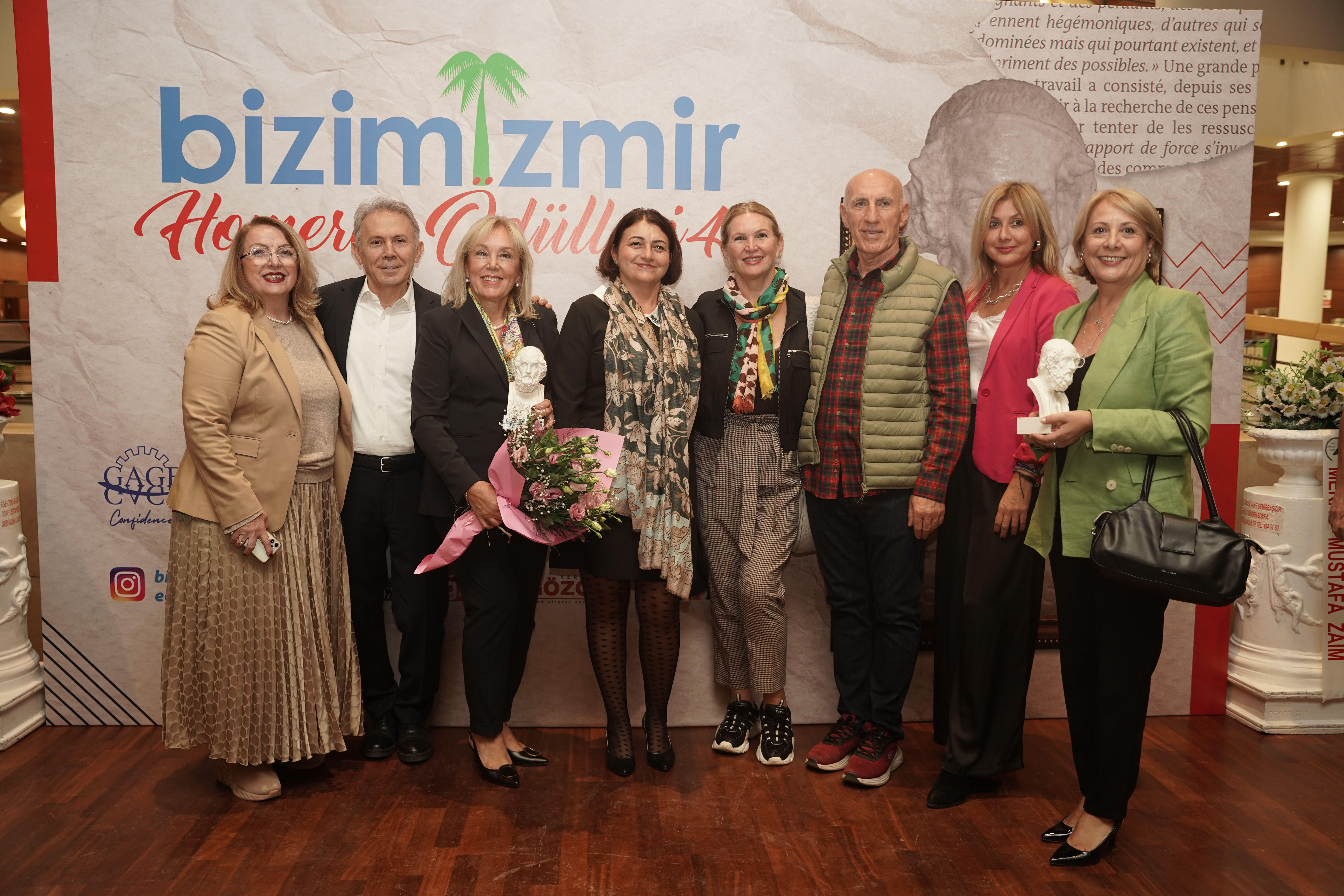 Bizimizmir Homeros Plastik Sanatlara Katkı Ödülü Resim Dalında Dr. Turan Enginoğlu, Seramik Dalında Prof. Sevim Çizer’e, Bizimizmir Homeros Sahne Sanatları’na Katkı Tiyatro Ödülü Rüchan Gürel’e, Klasik Müzik, Caz, Rock, Pop Müzik Ödülü Olten Sanat Vakfı’na, Türk Müziği Ödülü İzmir Devlet Korosu Kurucusu- Besteci- Şef Dr. Teoman Önaldı’ya, Türk Halk Müziği Ödülü yaşayan efsane Bedia Akartürk’e verildi.