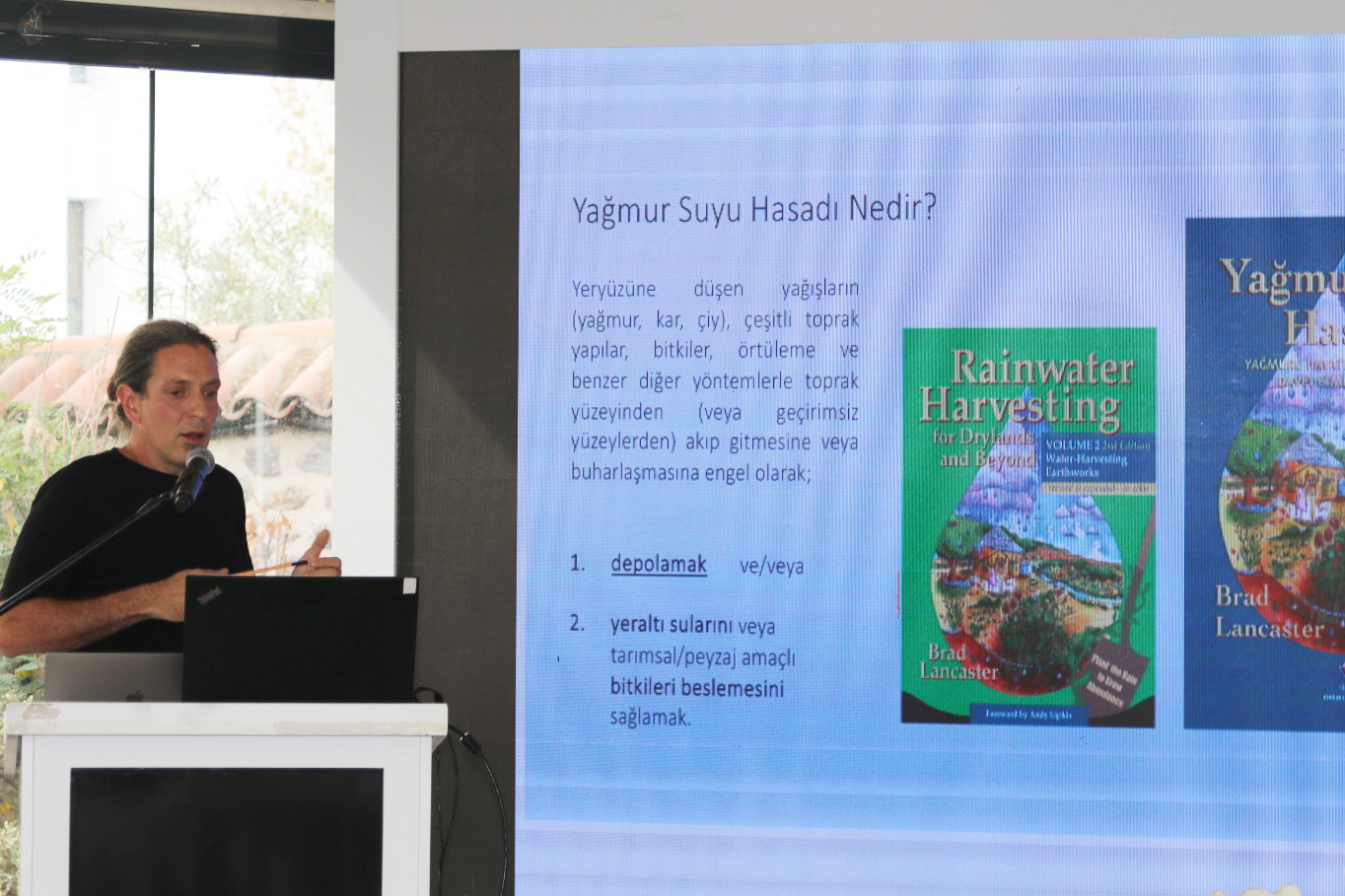 Yuva Derneği Eğitmeni Emre Rona ise Yağmur Suyu Hasadı ve Kırsalda Su Tutma Çalışmaları başlıklı konuşmasında; “Toprağın suyu tutma kapasitesini artırmadan hiçbir kent kendini iklim risklerine karşı koruyamaz.” ifadelerini kullandı. Rona, ayrıca kent çeperlerinde oluşturulacak yeşil altyapıların, afet risklerini azaltmada kritik rol oynadığını vurguladı.