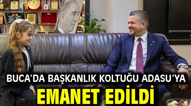 Buca Belediye Başkanı Mimar Görkem Duman, başkanlık koltuğunu bir günlüğüne 2. sınıf öğrencisi Adasu Yaşasın’a bıraktı. Minik başkanın sergilediği özgüven dikkat çekerken Başkan Görkem Duman, “Görevimi sevgili Adasu’ya emanet etmekten büyük onur duydum” dedi.