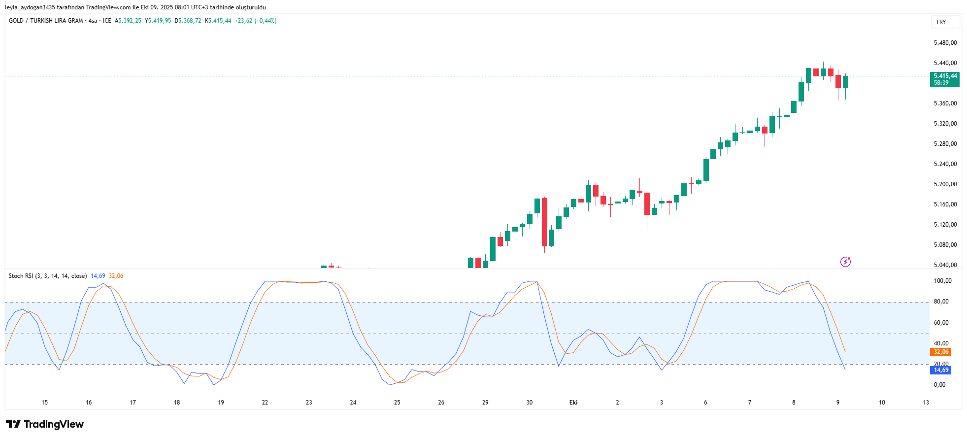 Öte yandan serbest piyasada gram altın 9 Ekim 2025 gram altın fiyatı 5.417 TL’den güne başladı. Dünkü işlemlerde gram fiyatı 5.443 TL ile yeni rekor seviyesini görmüştü.