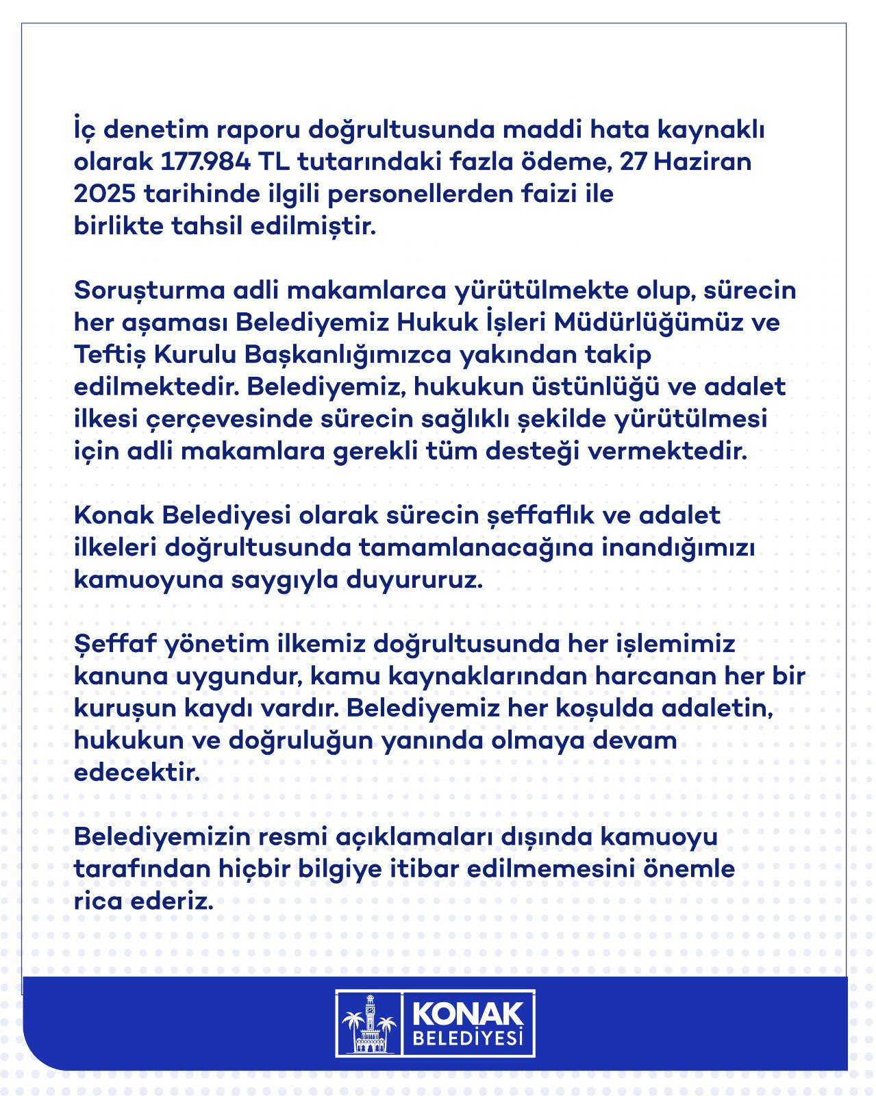 KONAK BELEDİYESİ'NDEN AÇIKLAMA