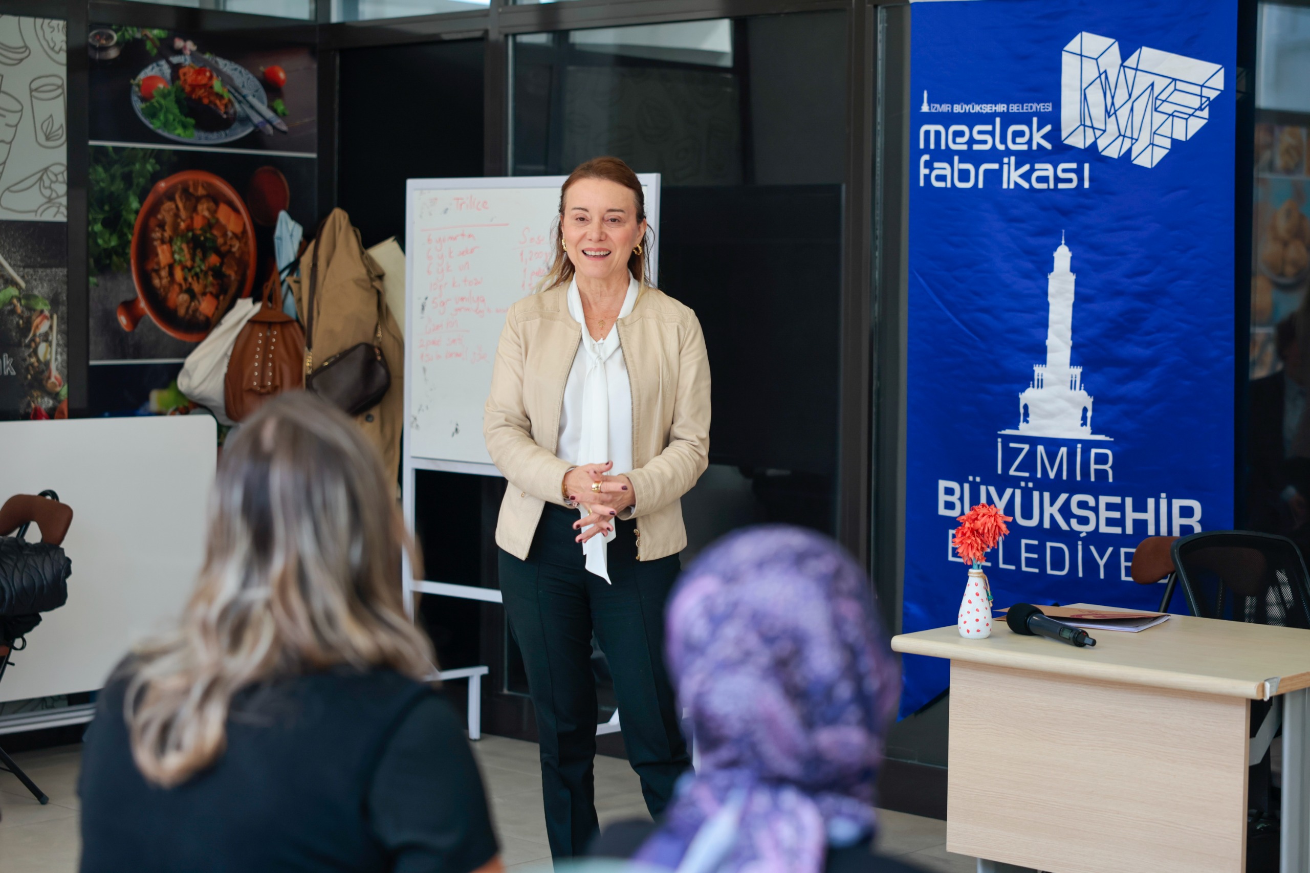 Kursu başarıyla tamamlayan katılımcılara sertifikalarının verildiği törende konuşan Başkan Mutlu, “Kadınların, iş hayatının, üretimin içinde olması ve kendi ekonomik özgürlüğüne kavuşması gerektiğine çok inanıyoruz. Konak’ta her kadının görünür olduğu, güçlü olduğu ve ayaklarının üzerinde durduğu bir kent hayal ediyoruz” dedi.