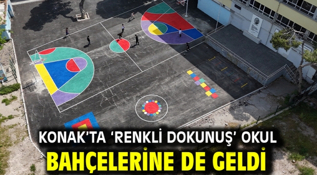 Konak Belediyesi’nin okul yollarına renk katan “Renkli Yol” uygulaması bu kez okul bahçelerine uygulandı.