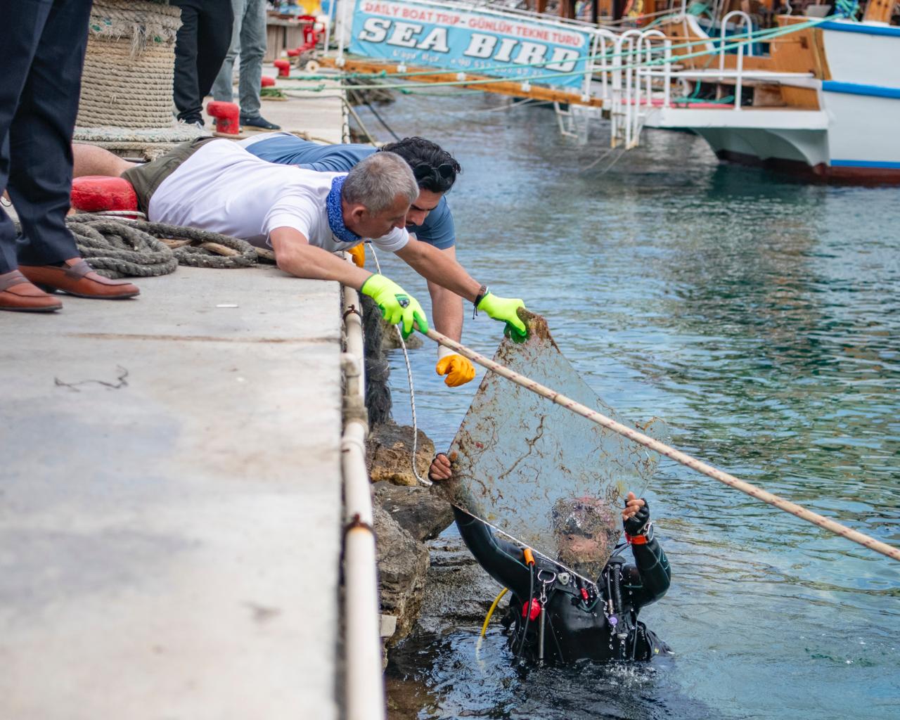 Gönüllüler, özellikle Yılancı Burnu kıyısı ile Güvercinada iskelesi çevresinde, tur teknelerinin bulunduğu alanın deniz tabanında yoğunlaşan atıkları temizledi. Çalışmalar sonucunda olta ve balıkçılık ekipmanları, plastik ambalajlar, cam ve pet şişeler, bardaklar ve çeşitli evsel atıklar sudan çıkarıldı.