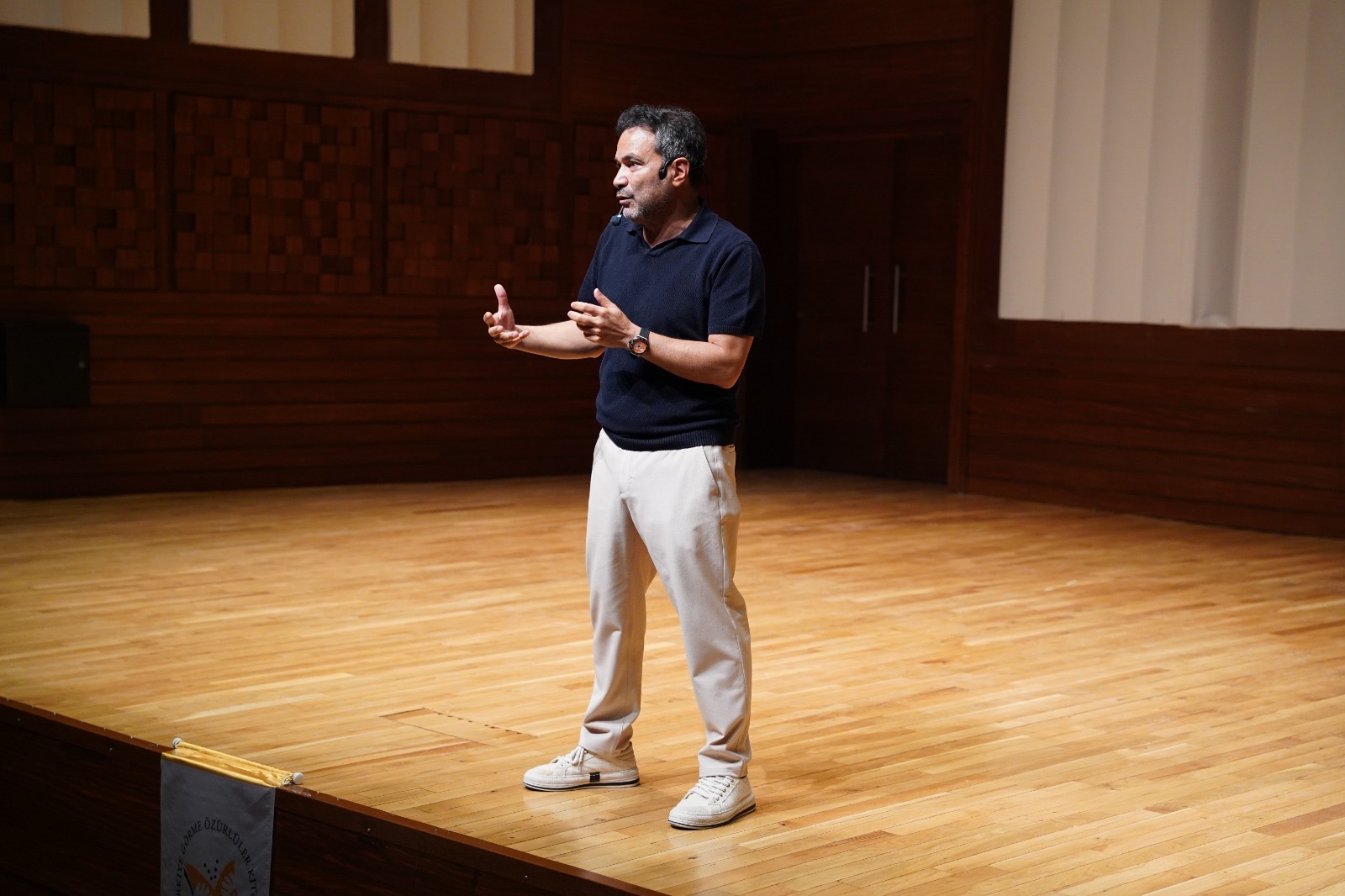 Eğitimin ve kişiye dokunmanın değeri üzerine örneklerle çok keyifli bir konuşma gerçekleştiren Ahmet Şerif İzgören’e TÜRGÖK Yönetim Kurulu Başkanı Tülay Yazgan desteği için teşekkür ederek, adına kabartma olarak basılan kendi kitabı “Şu Hortumlu dünyada fil yalnız bir hayvandır” ın Braille baskısını takdim etti.