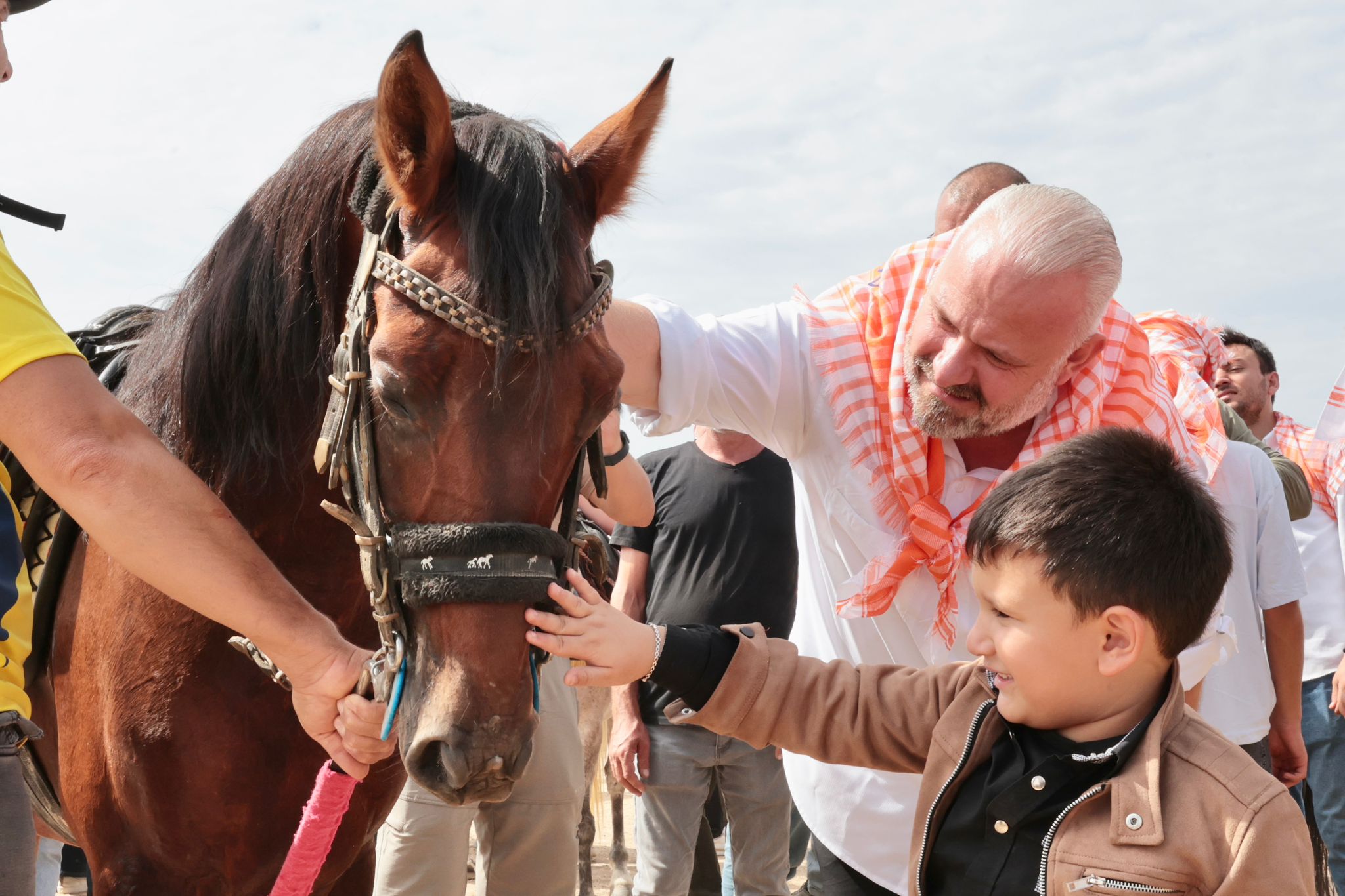 Alana rahvan at üzerinde vatandaşları selamlayarak gelen Menemen Belediye Başkanı Aydın Pehlivan, “Menemen bir yandan modern projelerle geleceğe yürürken, diğer yandan asırlık gelenekleriyle köklerine bağlı bir kenttir. Gelecek yıl rahvan at yarışlarımızı uluslararası düzeyde yapacağız” dedi.